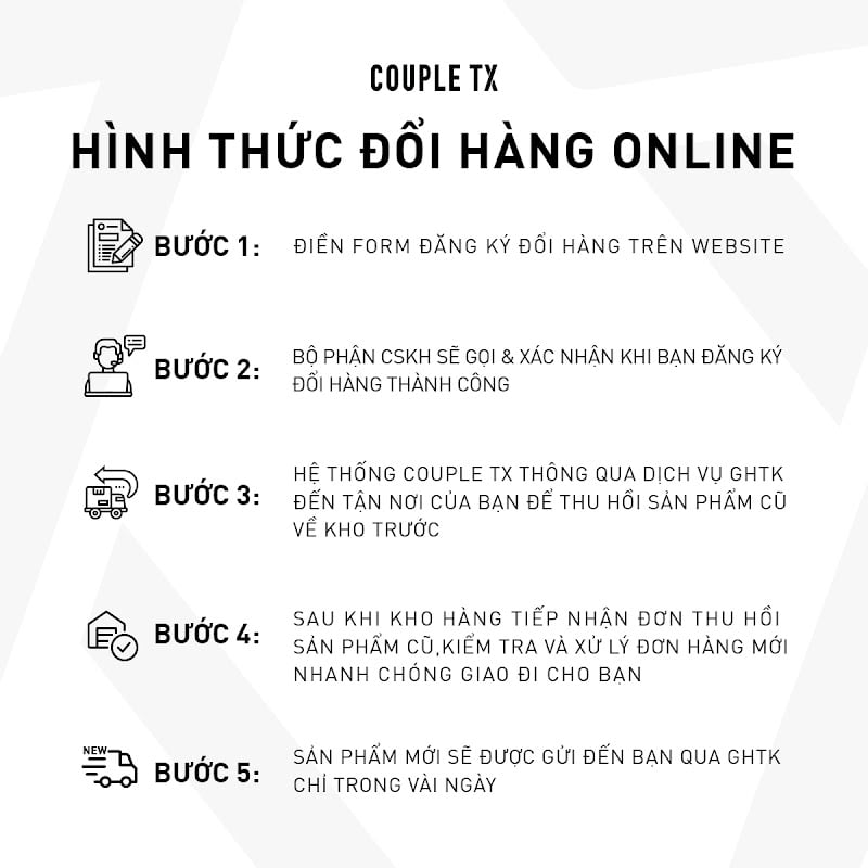 - Các chi phí vận chuyển đổi hàng Couple TX sẽ chi trả 100%.