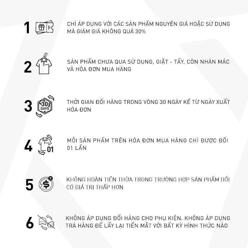 Ngoài ra, để đảm bảo quá trình đổi hàng được diễn ra suôn sẻ hơn, bạn hãy tham khảo thêm các điều kiện áp dụng cho chính sách đổi hàng nhé! (Hình để bên dưới - các điều kiện)