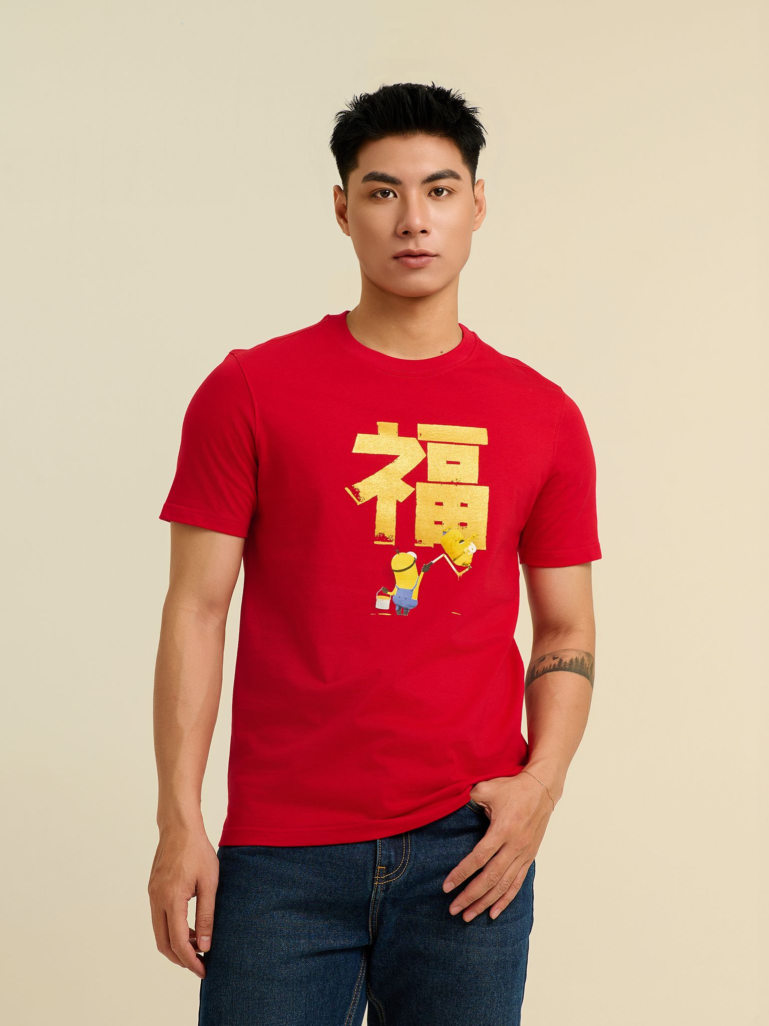 Áo Thun Nam Regular Minion Tet Holiday MTS 1499 , áo thun với thiết kế hình in Minions mang đến phong cách trẻ trung và hiện đại, với nhiều kiểu dáng phù hợp cho cả nam, nữ và trẻ em. Sản phẩm có màu sắc đỏ nổi bật dễ phối đồ, phù hợp với tông da người Châu Á.