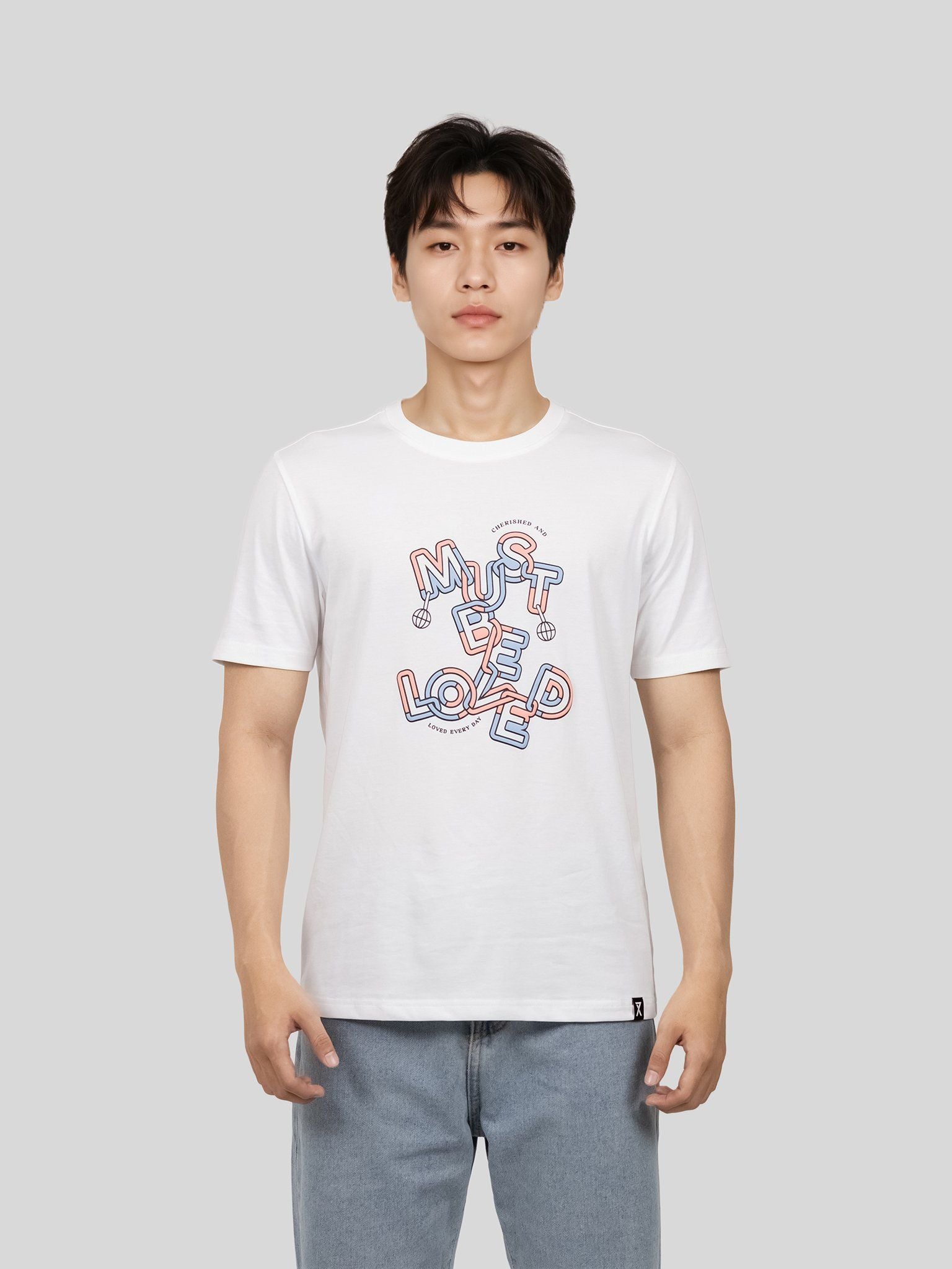 Điểm nhấn nổi bật là thiết kế in chữ "Must Be Loved" với kỹ thuật in cao sắc nét, tạo chiều sâu và độ nổi bật cho hình in, không chỉ truyền tải thông điệp tích cực mà còn tăng tính thẩm mỹ cho tổng thể áo. Một chiếc áo đơn giản nhưng đầy ý nghĩa trong từng chi tiết. Sở hữu ngay áo thun "Must Be Loved" – item vừa đẹp, vừa dễ mặc, vừa truyền cảm hứng.