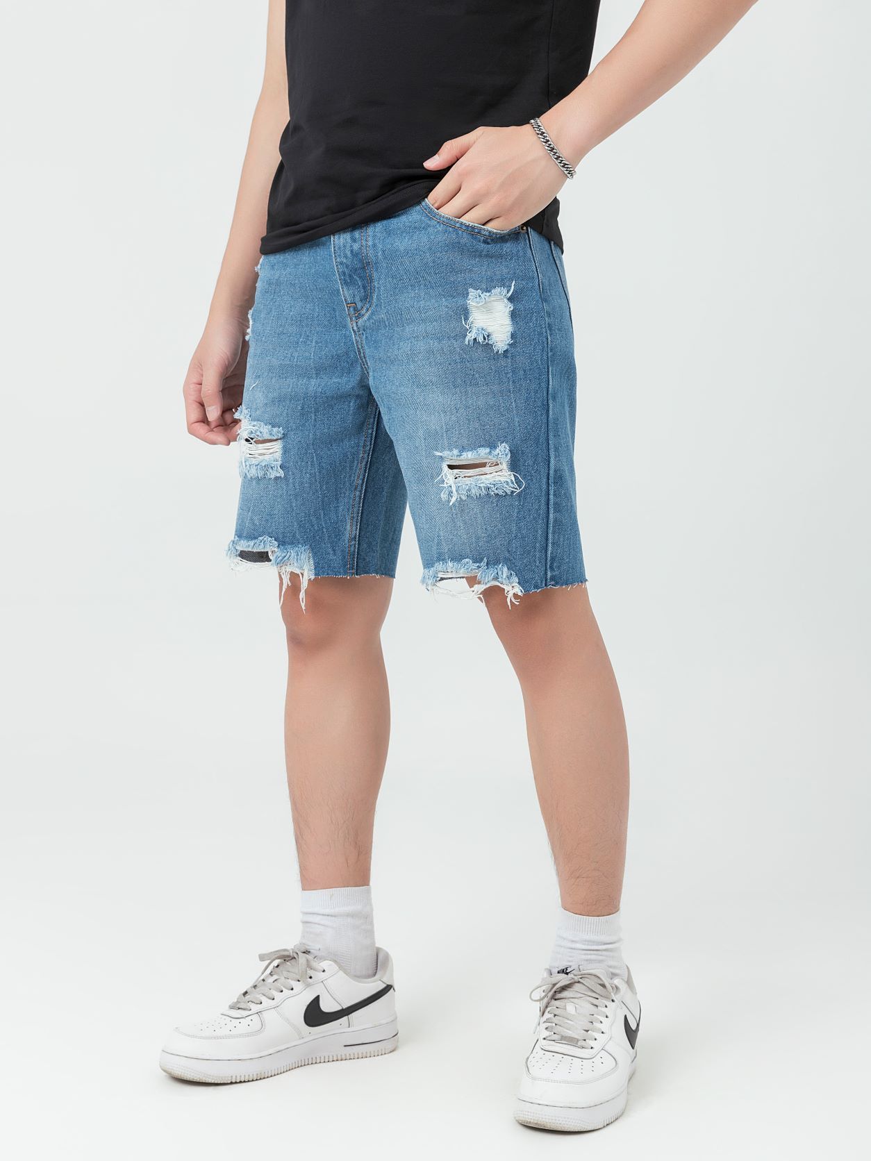 Quần Short Nam Regular Fit Wash Rách Lai Tưa MSR 1015